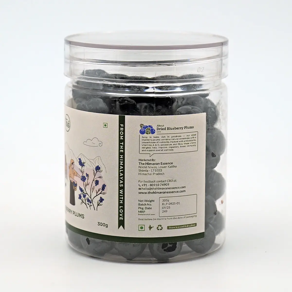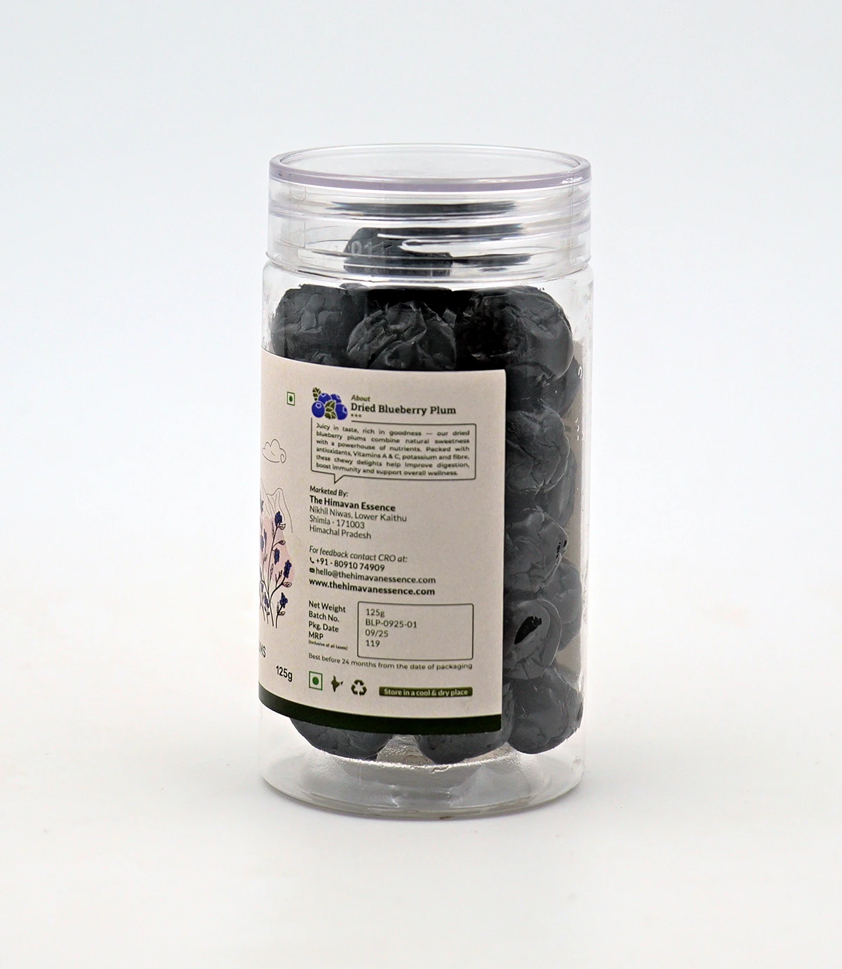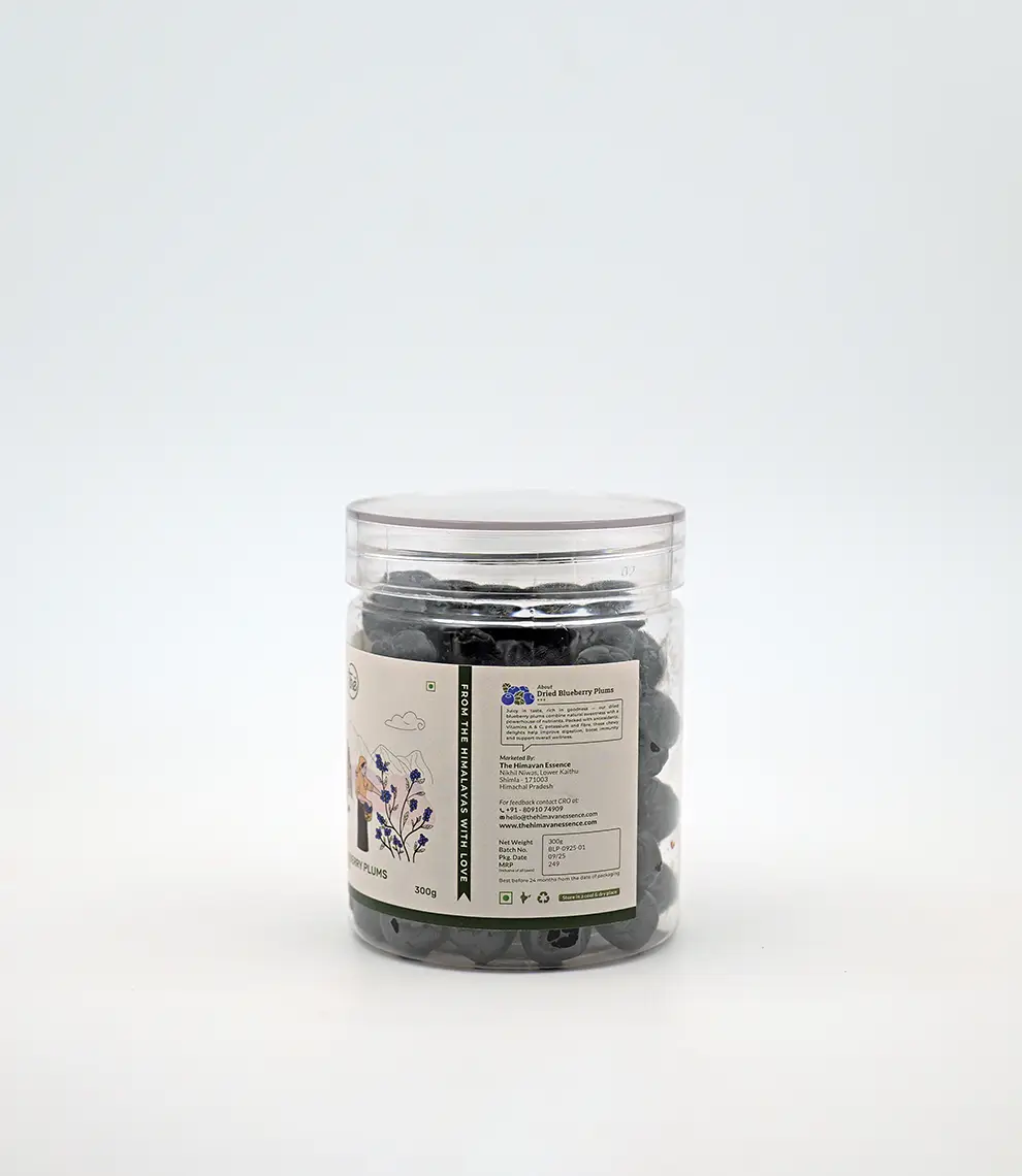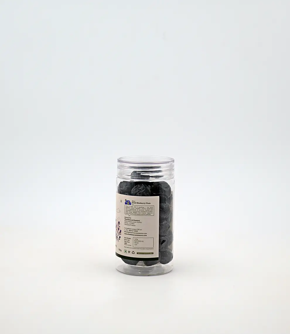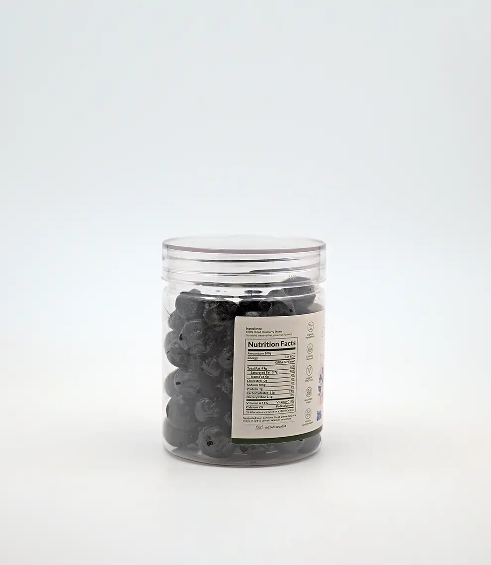 Dried Blueberry Plums are a delicious, nutrient-rich treat made by naturally drying plums infused with the deep, fruity notes of blueberries. Known for their high antioxidant content and digestive benefits, they make a wholesome addition to breakfast bowls, trail mixes, and desserts. Their chewy texture and balanced sweetness make them a favourite.