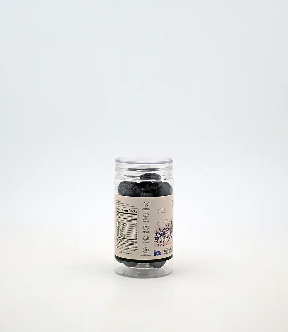 Dried Blueberry Plums are naturally sun-dried, deep violet fruits combining the sweetness of plums with the tart richness of blueberries, packed with antioxidants and dietary fiber.