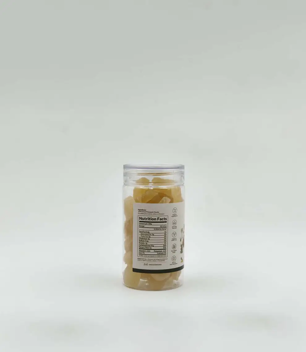 Dried Pineapple Chunks are golden, chewy fruit bites bursting with tropical sweetness, delivering a naturally energizing snack packed with antioxidants, enzymes, and essential vitamins.
