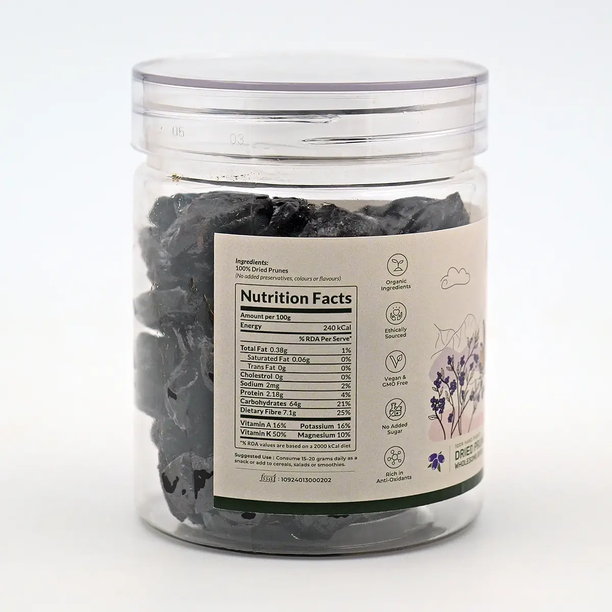 Dried Prunes are naturally sweet, sun-dried whole plums rich in fiber, antioxidants, and essential nutrients, offering a wholesome, chewy snack that supports digestion and overall wellness.