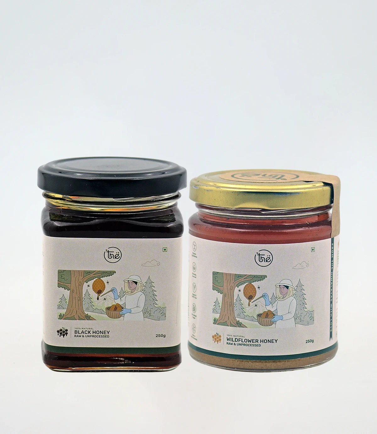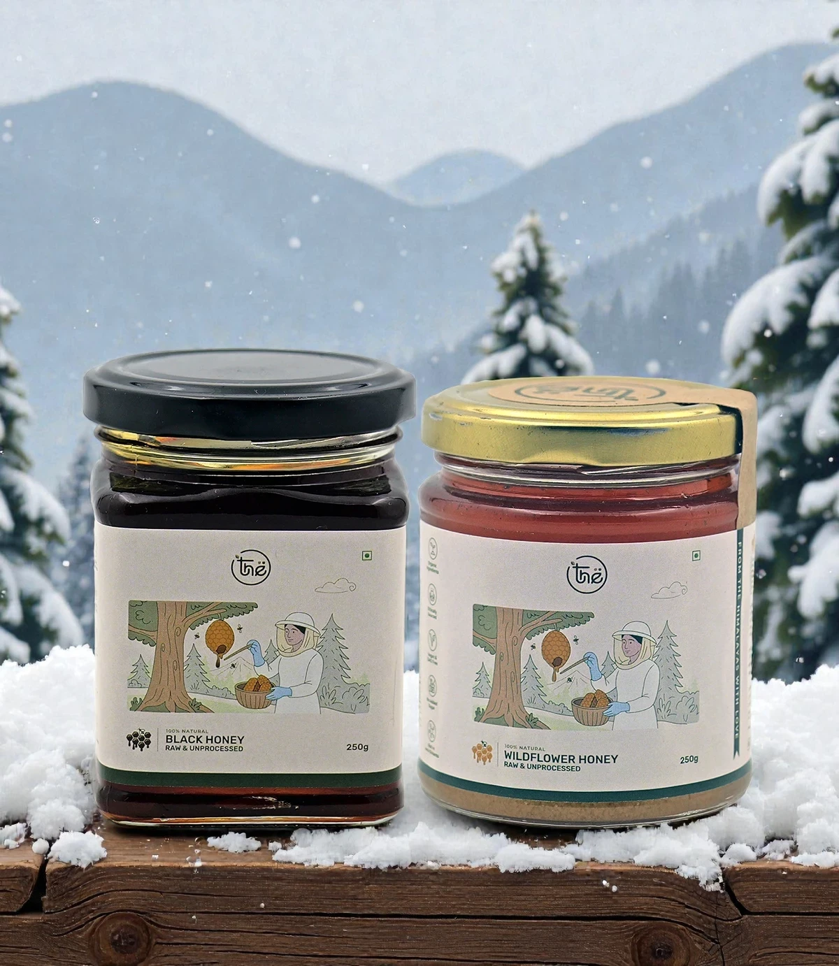 A pure duo of raw Himalayan honeys harvested from pristine hives, offering rich flavour, antioxidants, and natural nourishment to strengthen immunity and promote everyday wellness.