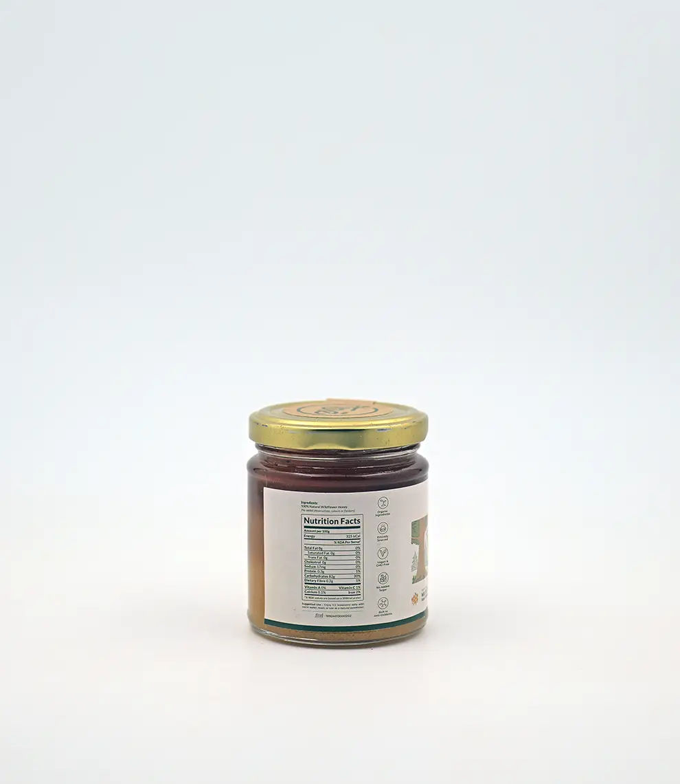 Organic Multi-flora Wild Honey is a golden, aromatic nectar collected from Himalayan wildflowers, prized for its rich flavor, natural enzymes, and health-boosting properties.